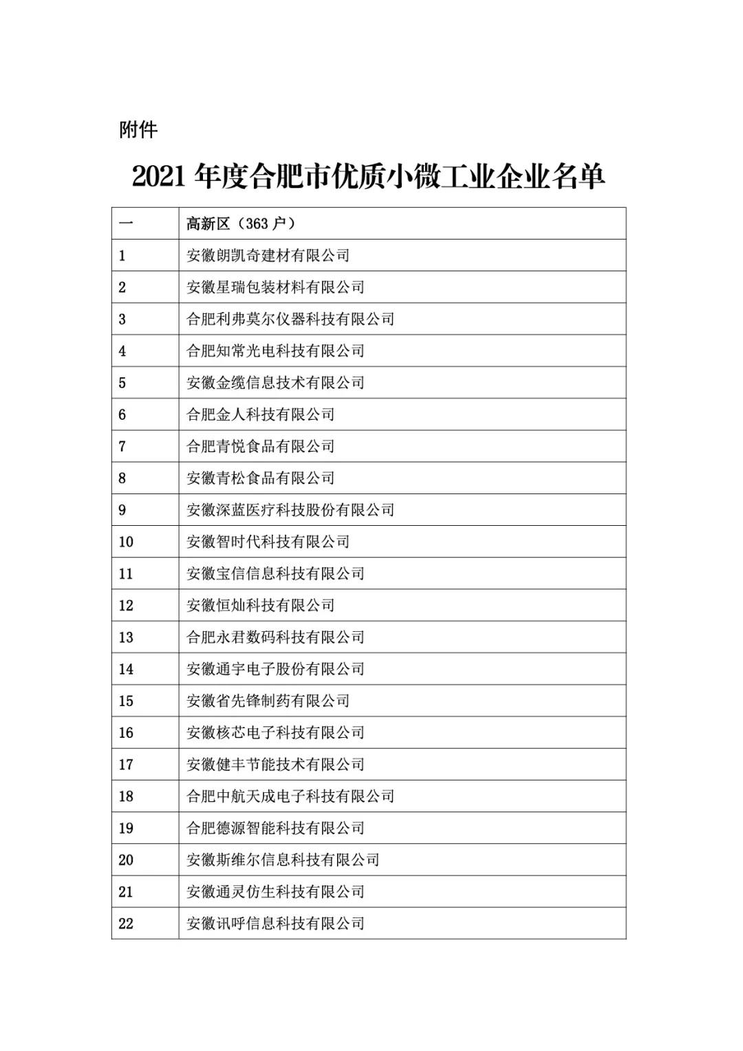 深入貫徹中央經濟工作會議精神,落實市委、市政府決策部署,根據《合肥市促進民營經濟發展條例》及《合肥市推動經濟高質量發展若干政策》(合辦〔2021〕8號)等文件精神,進一步做好“六穩”工作、落實“六保”任務,積發揮財政金融政策作用,在企業自愿申報,各縣(市)區經信局和開發區經貿局初審推介的基礎上,市經信局與市直有關部門充分信息溝通,對照條件認真復審,并在網上進行公示復核?,F將2021年度合肥市小微工業企業名單(共1160戶,名單見附件),向在肥金融、擔保機構、“信易貸”平臺和資本市場中介機構進行推介,被推介企業生產經營正常,符合產業政策,企業信用良好,且基本符合“稅融通”等信貸產品支持條件。請各單位主動加強與被推介企業的溝通合作,創新金融產品,提供金融服務,加大對相關企業信貸投放力度,促進小微工業企業持續穩定發展。